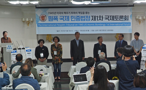 会場の位置は、昨夜泊まった晋州のホテルから北にだいぶ離れており、早朝6時30分のバス出発です。 1時間30ほどかかり、走行距離が80㎞でした。帰路も同じです。マラソンではないが、どこを通ったか興味があり、GPSの腕時計で軌跡をパソコンで見るのが楽しみです。 8時30分、市民法廷が開廷され、冒頭に原爆死没者に黙祷を捧げました。 参加者は、韓国を主に総勢180人です。 市民法廷は、昼食をはさみ 第1セッション 韓国の原爆被害者から見た米 国の原爆投下の政治的・軍事的意味 第2セッション 1945年当時の国際法から見 た原爆投下の違法性 第3セッション 1945年当時の慣習国際法か ら見た原爆投下の違法性 のテーマで行われました。 各セッションは、コディネターと専門家2~3人の発言で進められ、会場発言もありました。 第1についての感想は、当時日本の支配下にあった朝鮮半島の人たちは、米国の原爆投下によりより、植民地主義から解放されたと思う人多いとのことですが、実は、原爆投下がなくても日本は敗戦状態であり、敗戦後の米国世界覇権の戦略だったと分かったことです。そして、朝鮮動乱が起き、朝鮮半島が米ソの思惑で分断国家にされことです。 第2、3については、人間の数万年以上に至る領地争い、世界大戦、弱肉強食の歴史のなかで、戦争をしないで人間が如何に生き延びるか、追求してきた歴史が検証されたと思いました。 今日の結論は、1945年当時の国際法、慣習国際法から見て、原爆投下は違法であると断罪されました。 特に印象に残ったのは、第3セッションで、会場からの発言者10人あり、法律論、運動論が交わされたことです。時間が足りないほどの熱意が伝わり、胸が熱くなりました。 朝鮮半島の人たちは、日本の植民地下で強制的に徴用されたうえ、過酷な重労働を強いられました。そして、広島・長崎で原爆被害をうけたのです。さらに、生きて帰国しても差別や朝鮮動乱の被害を受けました。 どうしたら、民族の対立や分断、戦争、弱肉強食のない平和な暮らしになるのか。 韓国の被爆者や市民のなかから生まれた運動(アイデア)が、米国の原爆投下の違法性と謝罪を求める国際市民法廷会議だと理解しました。 |